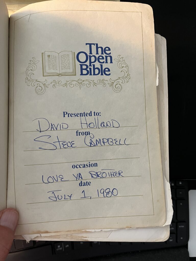 Yesterday, it was my privilege to bring a short teaching from Ephesians to a group of precious men at a noontime gathering. I read from this tattered, falling-apart Bible I’ve had for more than 43 years.