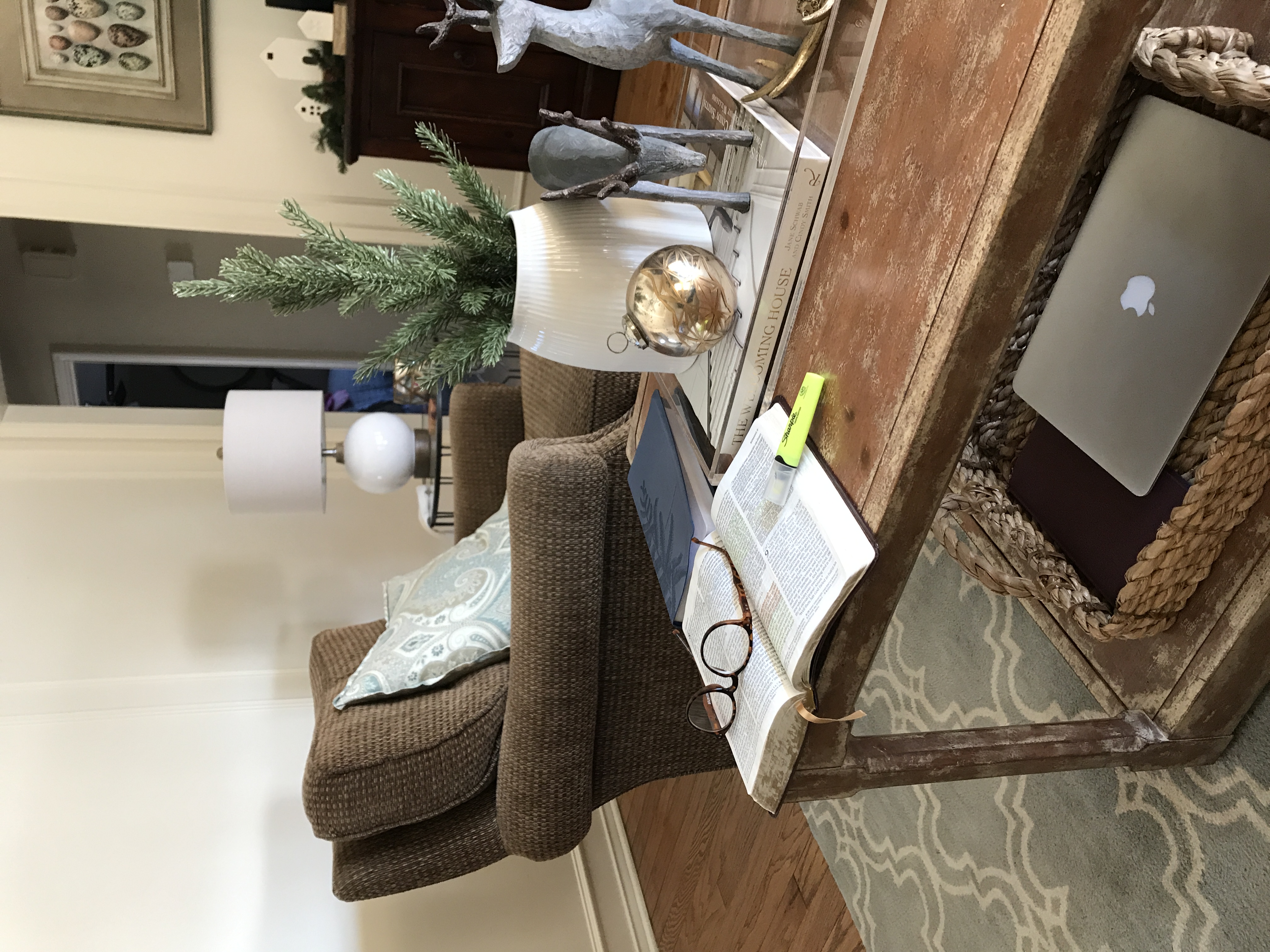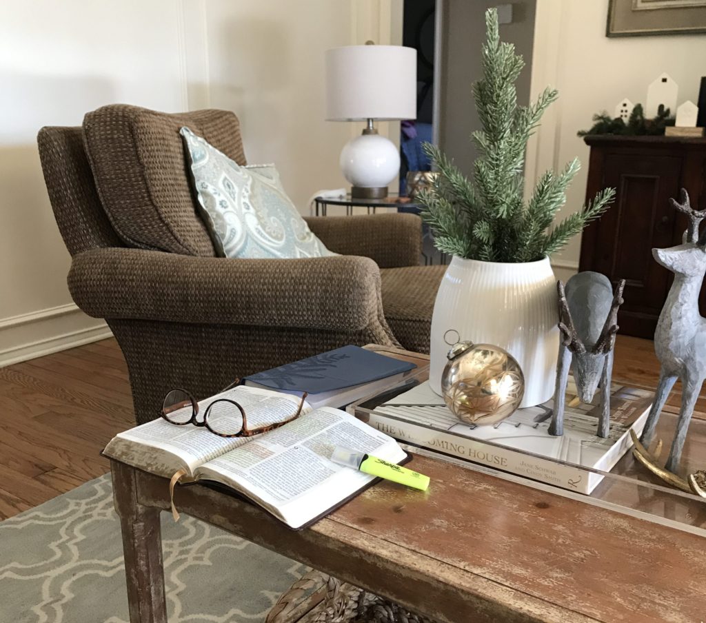In fact, as I sit here on our sofa where we share morning coffee, one of them is visible just to my left. The evidence is visible in the photo above. She is a woman of the Word.