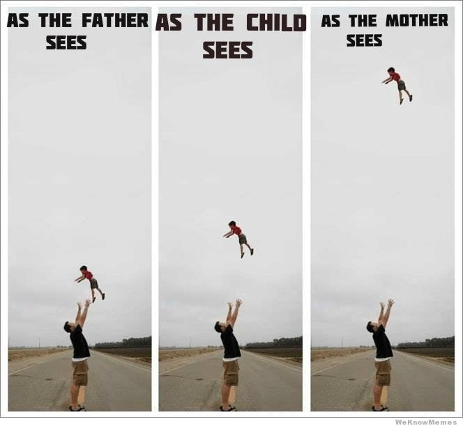 Other studies have observed that the way fathers tend to play with their kids differs markedly from play initiated by their mothers. It is the three-year-old’s father who is likely to be down on all fours pretending to be a bear; saying, “Rarrr, I’m going to eat you up!”; with the child at once laughing and screaming in giddy fear.