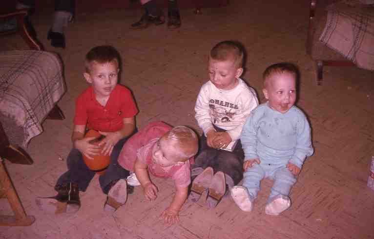 Yes, that’s me, second from the right rocking the white sweatshirt. ( I think it says “Bonanza.”) My little brother is wearing the footie jammies. If he’s two years old here, then I’m four.